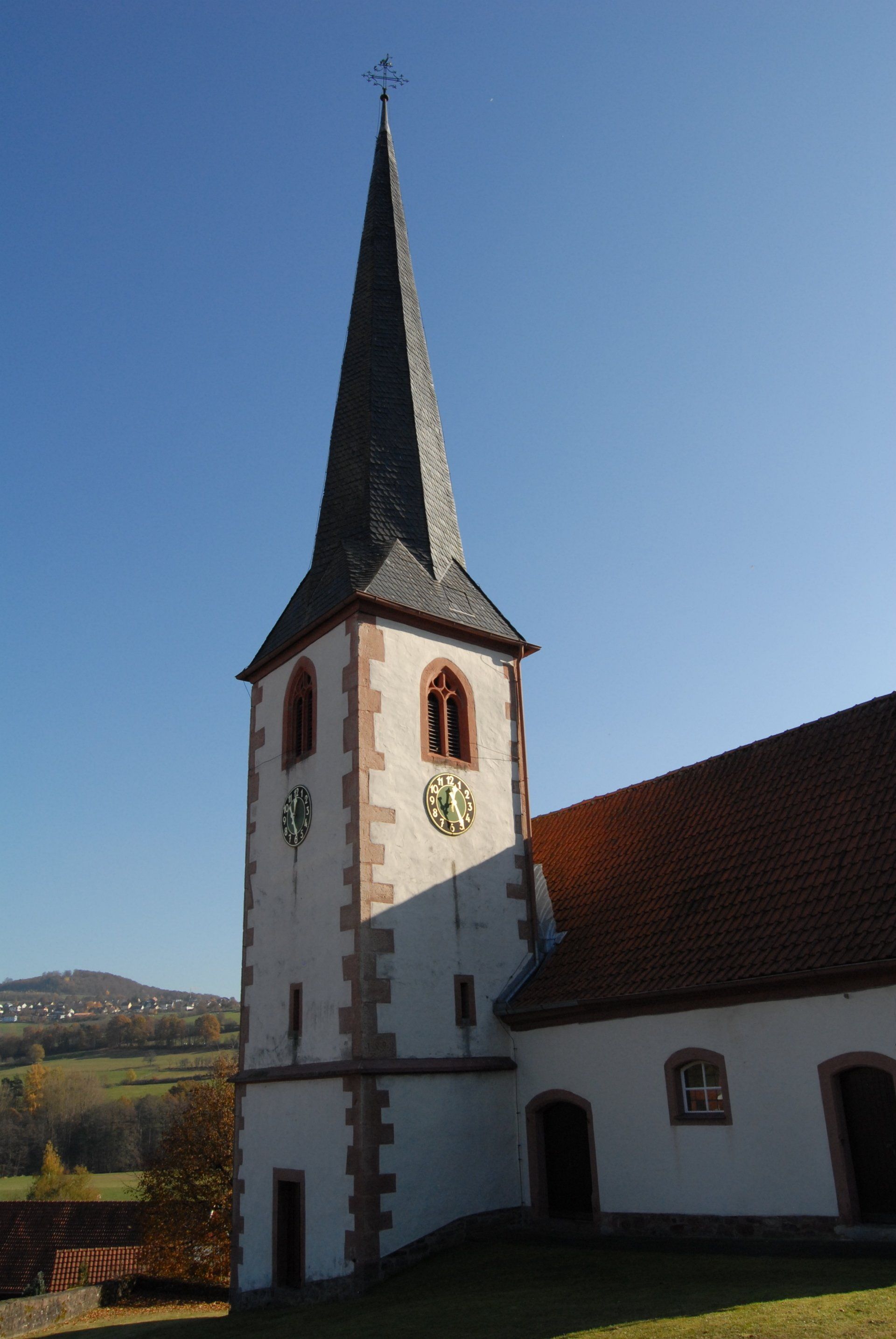 Weichersbach mit seinen vielen Mühlen liegt vor der Verengung des Sinntals Richtung Oberzell. In der Dorfmitte liegt die Kirche mit einem modernen Anbau, der zu geselligem Zusammensein nach und zu Gottesdiensten, Kirchenkaffees und Kindergottesdienst genutzt wird.