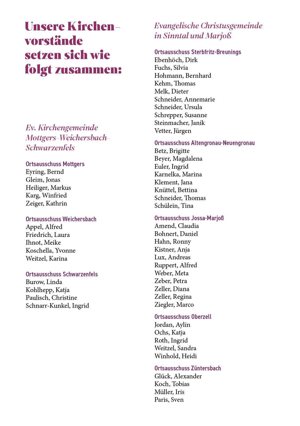 Er besteht aus der Ev. Christusgemeinde in Sinntal und Marjoß und der Ev. Kirchengemeinde Mottgers, Weichersbach, Schwarzenfels.